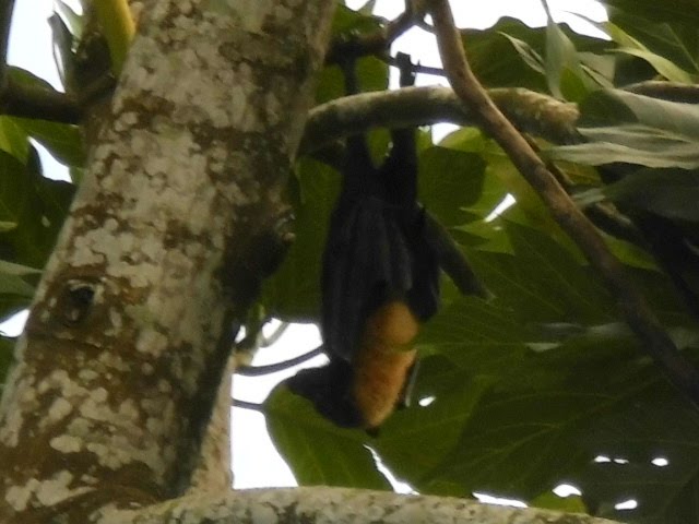 We have giant bats that sometimes sit in our tree for 12 hours eating bread-fruit. They are huge!